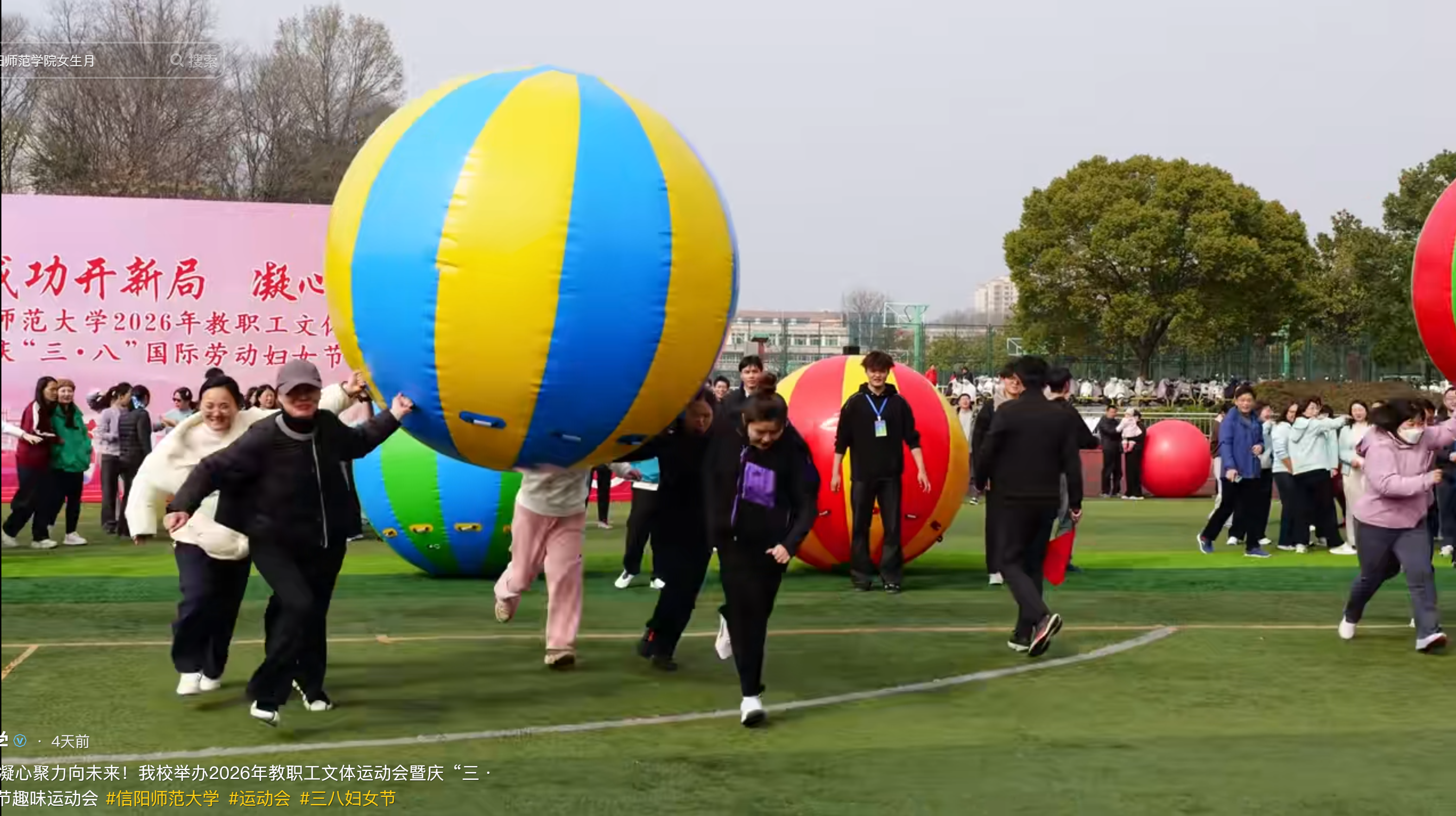 我校举办庆“三八”国际劳动妇女节趣味运动会信阳师大新闻网讯 3月5日,由校工会主办,体育学院协办的2026年教职工文体运动会开幕式暨庆“三八”国际劳动妇女节趣味运动会在西田径场举行。河南...