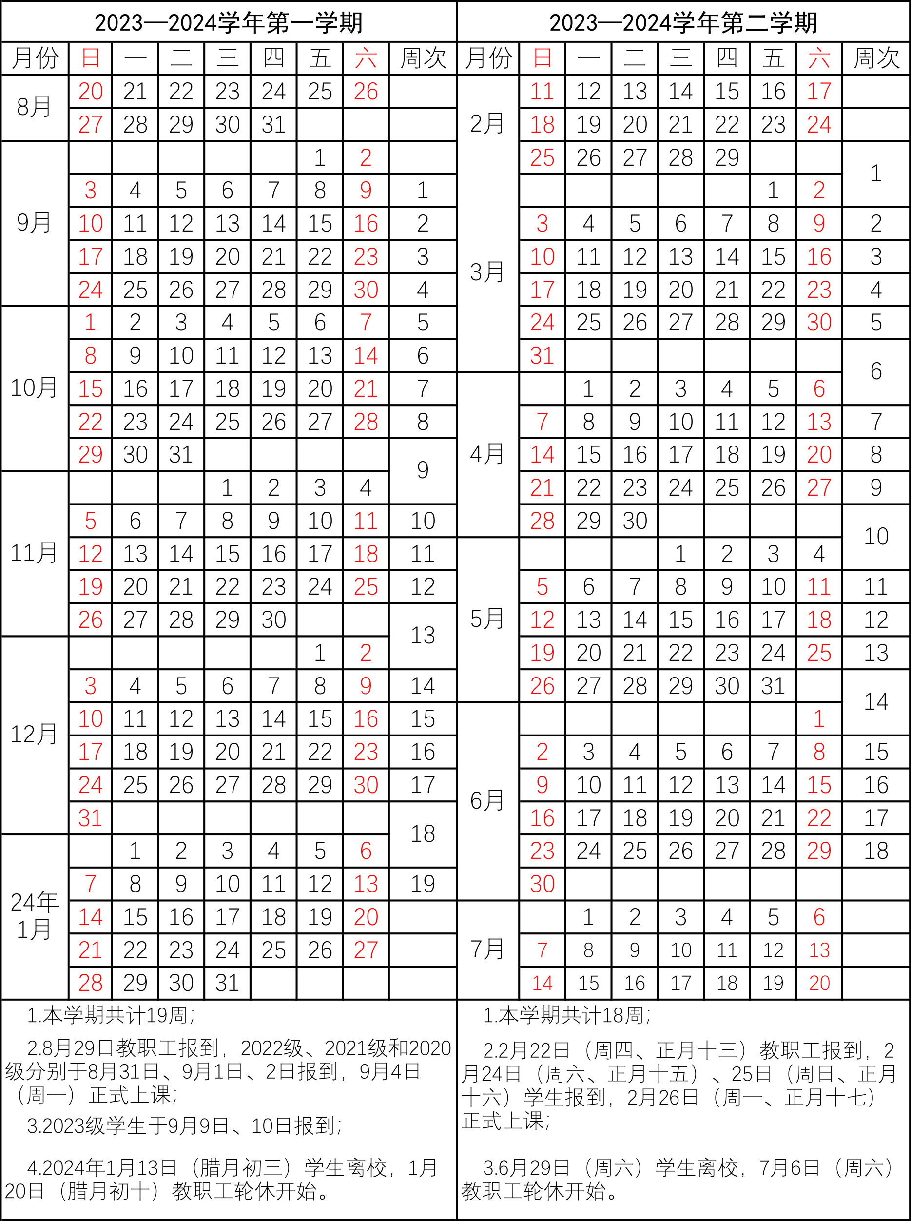 信阳师范大学2023—2024学年校历